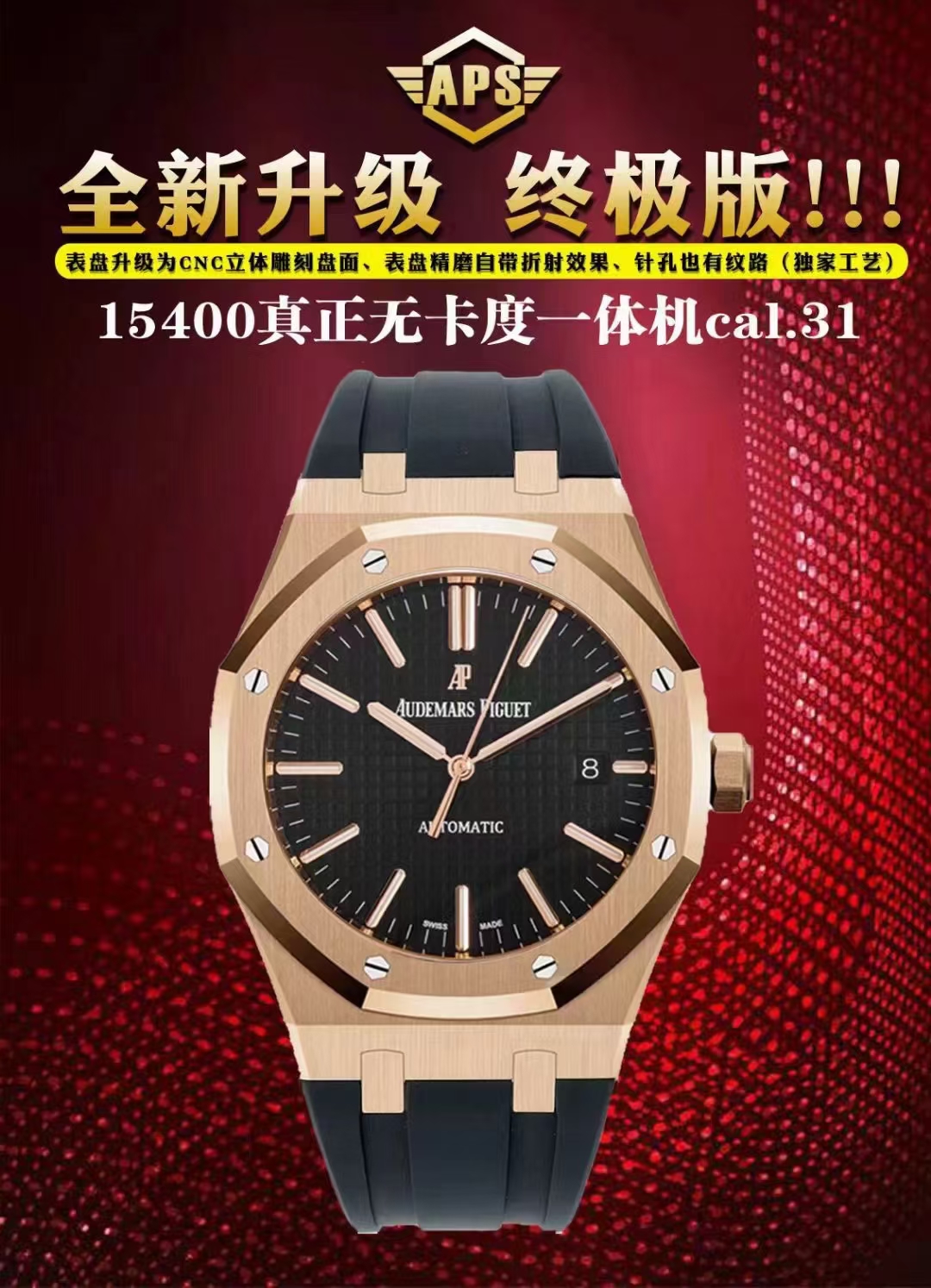 2、APS版的15400是市面上唯一能与原版各部件互换通用的版本,表壳所有结构位置和装配方式与原版一致